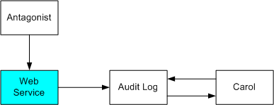 For example, antagonists may try to imitate Bob. Using a monitor/management tool, the security administrator, Carol, reviews the audit log and sees that Alice's calendar has had a number of security failures. In reviewing the data she sees that sometimes Bob's request fail because his signature does not match the message or messages are old (replayed). As a result Carol collects the audit records for use in trying to track down the antagonists.