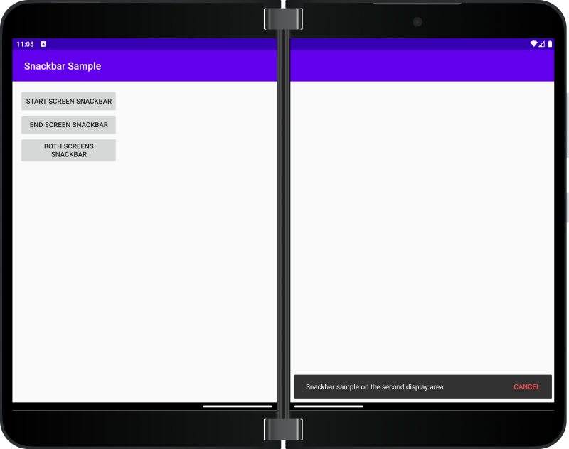 Once the package has been added, follow these steps to implement the dual-screen Snackbar:
