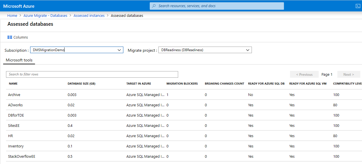 You can see the number of migration blockers per each database, the recommended target per each database in the above view.