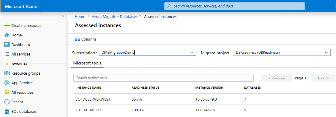 3. Select Assessed database instances to get to SQL Server instance level view.
