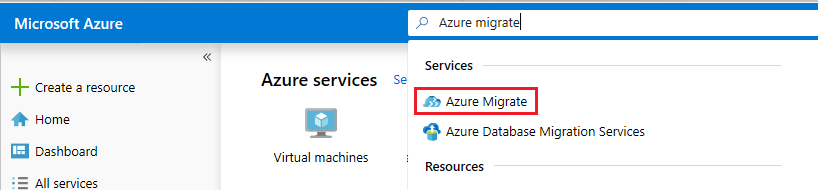 1. Sign in to the Azure portal, select All services, and then search for Azure Migrate.