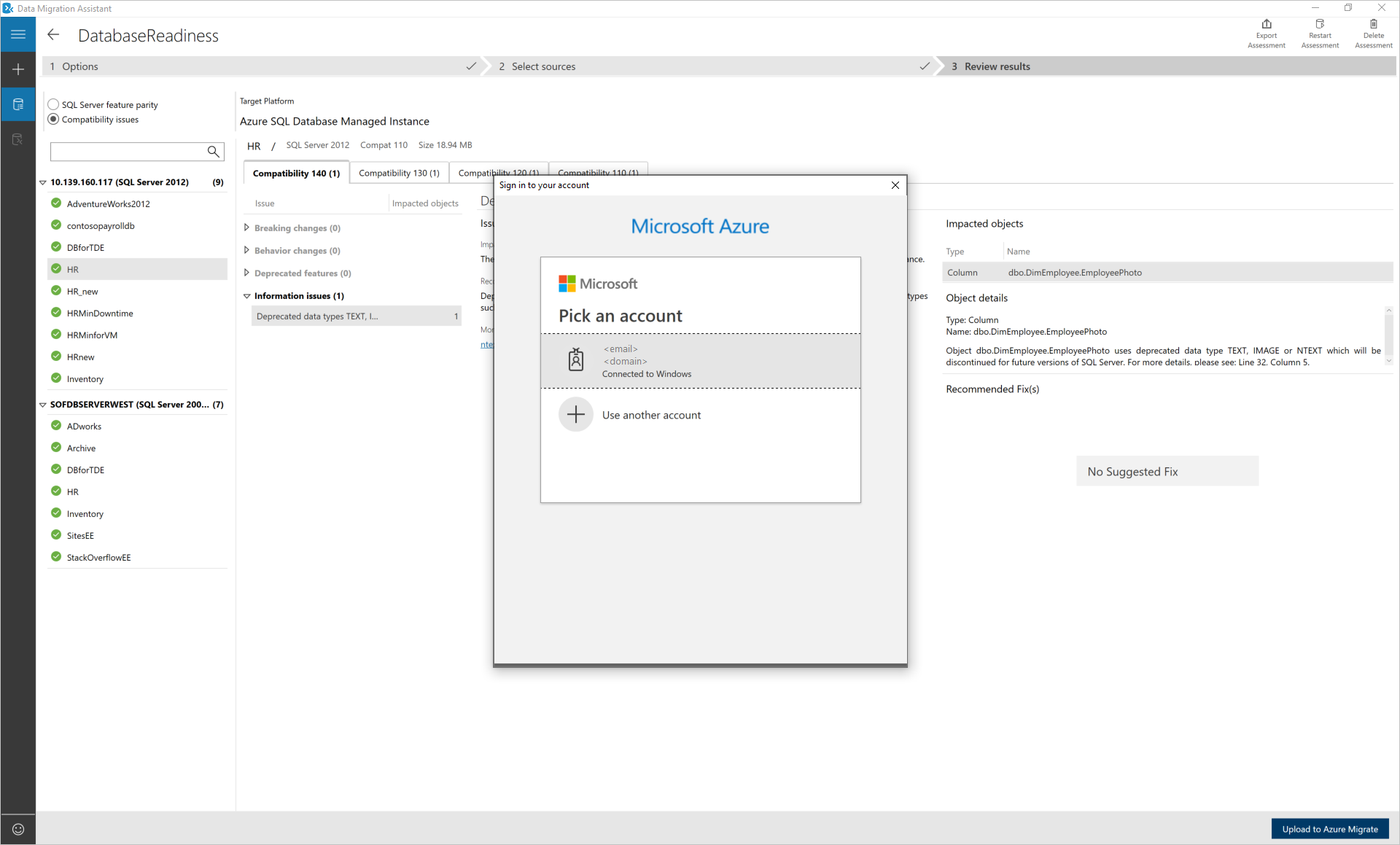 Assess the readiness of a SQL Server data estate migrating to Azure SQL Database using the Data Migration Assistant