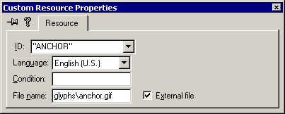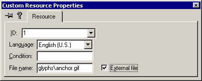 Resources are typed in the resource script. There are a number of standard types, like BITMAP, MENU, HTML, CURSOR, and ICON. You can also have custom types to categorize resources. For the purposes of editing glyphs, you will be dealing with GIF or BITMAP resources.