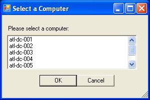 What’s that? You say this looks kind of complicated? Well, maybe. But that’s because PowerShell has no built-in methods for creating and displaying dialog boxes; instead, we need to rely on the .NET Framework, and the .NET Framework can be a bit complicated at times. On the bright side, however, much of this script is boilerplate code. (If you don’t believe us, compare it to our script for creating an input box.) Even better, this script really does let you select computers from a list box: