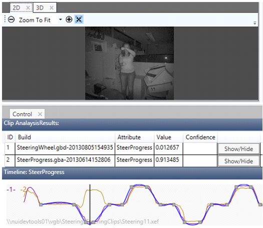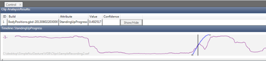 Enables you to test a gesture database (.gba or .gbd) using all of the clips in the analysis project. Analyzes how well the detector results of the analysis clips compare to the tags on the clips in the training project. Analysis results will appear above the Timeline control.