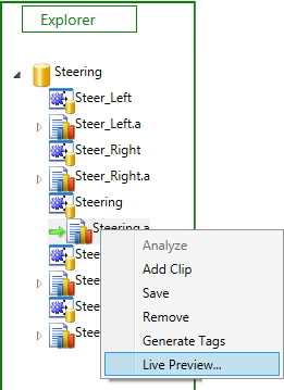To access the context menu for an analysis project, open an existing solution in VGB (File > Open Solution) and right-click on an analysis gesture project (.a) in the Explorer.