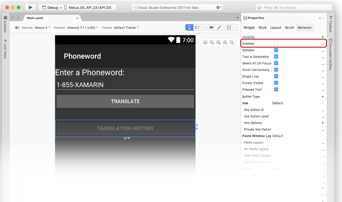 Start by opening the Phoneword application in Visual Studio and editing the Main.axml file from the Solution Explorer.