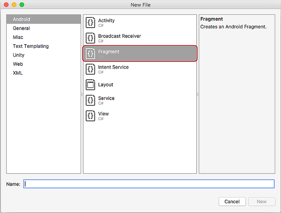 Create a new Xamarin.Android project called FragmentSample.