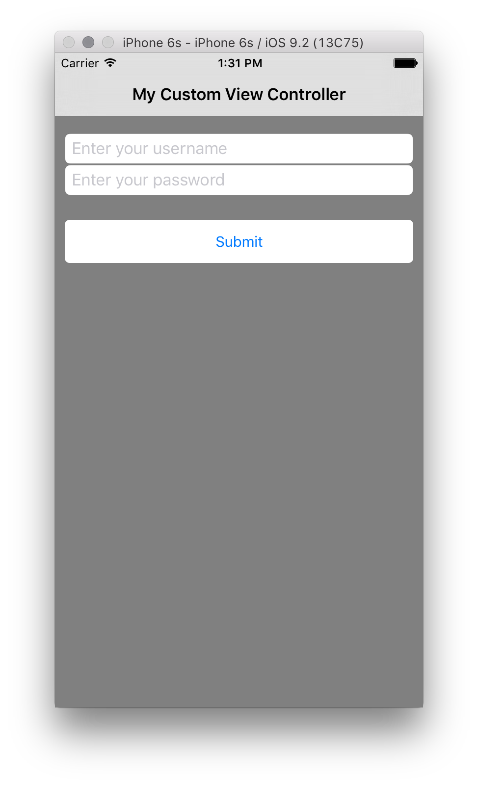 For example, let's edit the CustomViewController to create a login screen where the user can enter a username and password. The screen will consist of two text fields and a button.