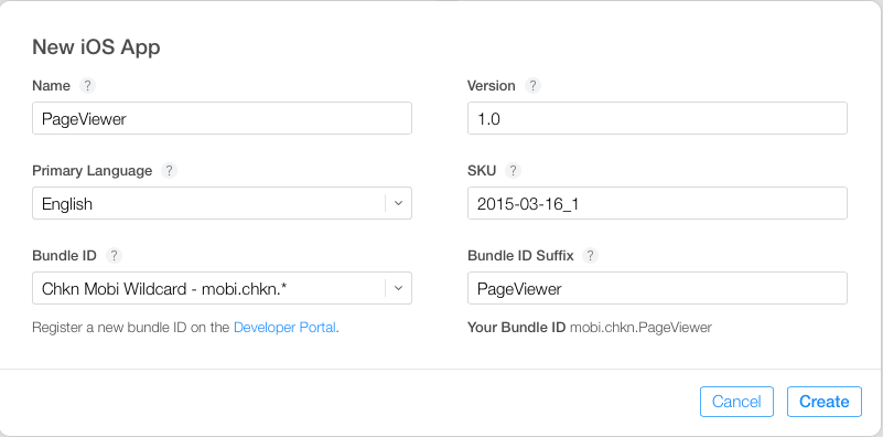 - Bundle ID Suffix — If you have selected a wild card Bundle ID (i.e. ending with a *, as in our example above), an additional box will appear, prompting for the Bundle ID suffix. In the example the Bundle ID is