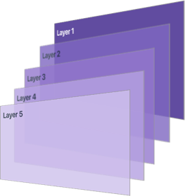 Layered Images contain from two (2) to five (5) separate layers that are combined to form a complete image. With the exception of the background layer, each layer uses its Z-order along with transparency to create an illusion of depth. When the user interacts with a Layered Image, higher Z-ordered layers are scaled and overlapped to create this effect.