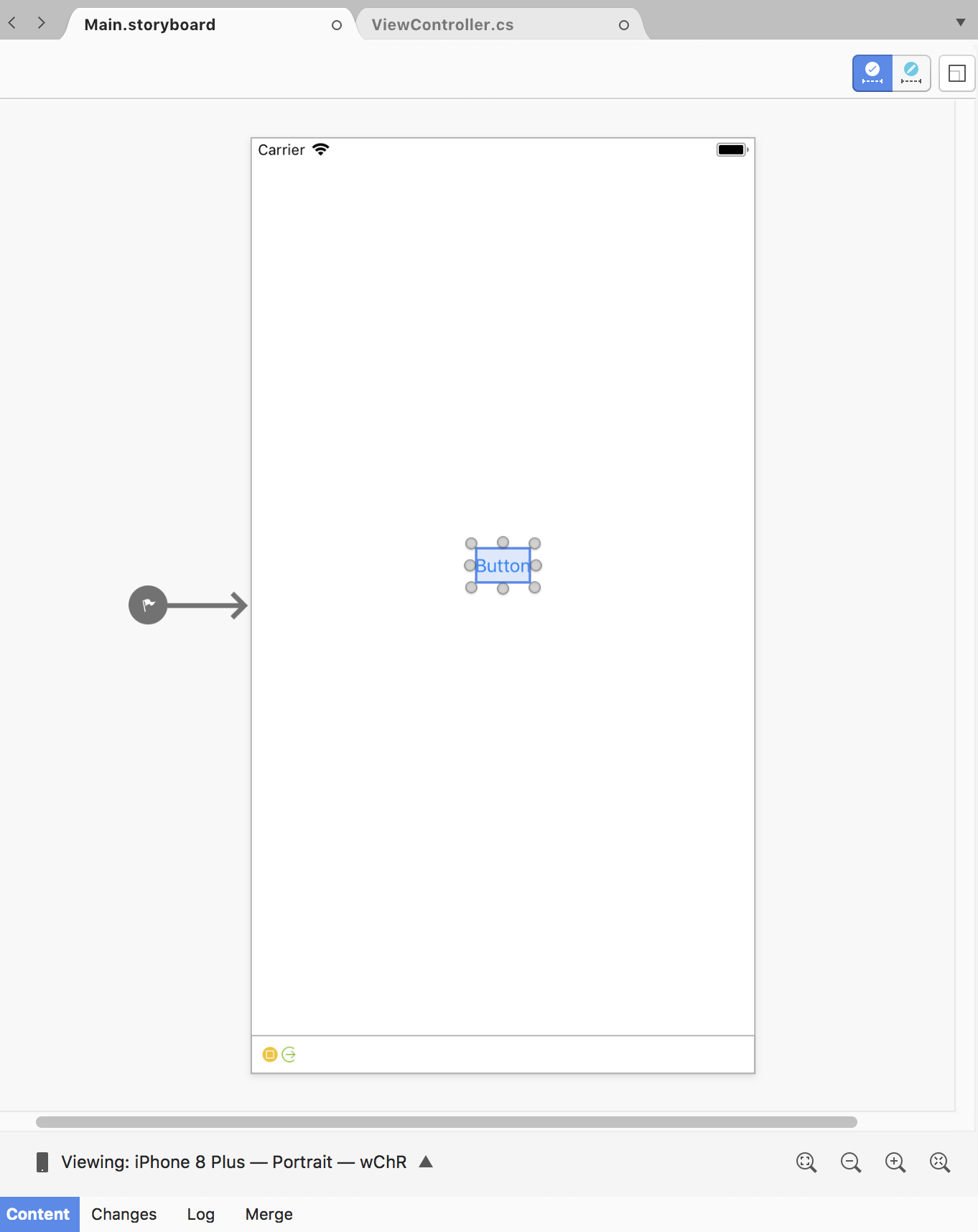 - Bottom Toolbar – Contains options for changing how the iOS Designer displays the .storyboard or .xib file, including device, orientation, and zoom.