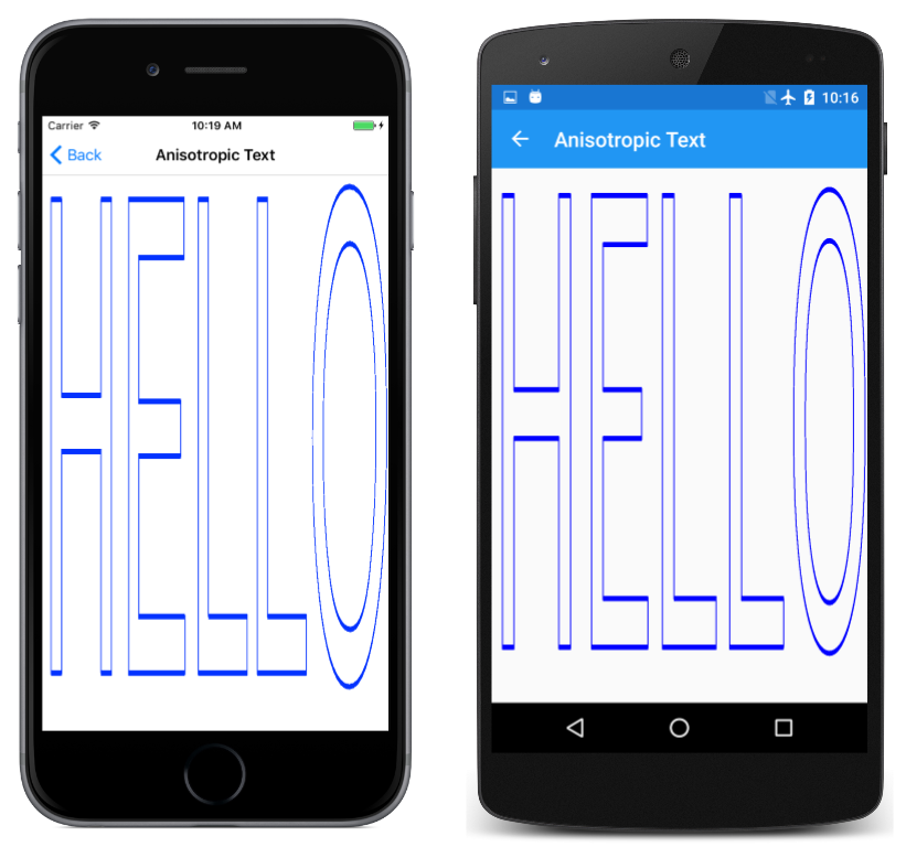The Centered Scale page shows how this works. The PaintSurface handler is similar to the Basic Scale program except that the margin value is calculated to center the text horizontally, which implies that the program works best in portrait mode: