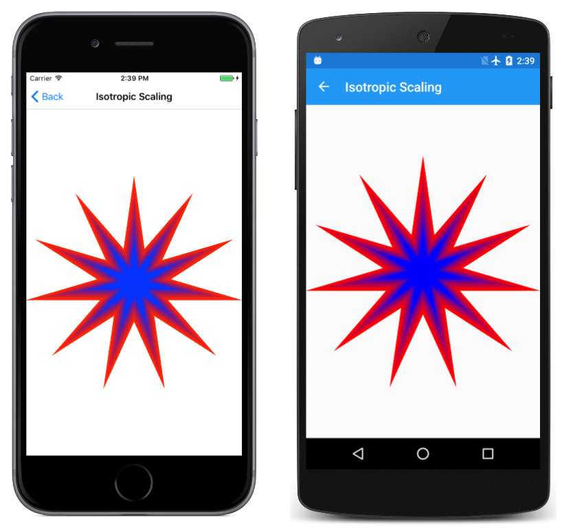 The availability of this information implies that it should be possible to derive scale and translate factors suitable for scaling a path to the size of the canvas. The Anisotropic Scaling page demonstrates this with the 11-pointed star. An anisotropic scale means that it's unequal in the horizontal and vertical directions, which means that the star won't retain its original aspect ratio. Here's the relevant code in the PaintSurface handler: