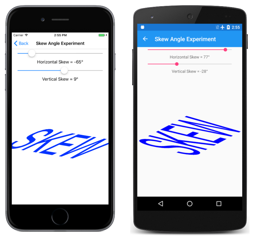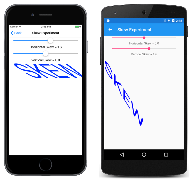 Although Xamarin.Forms defines properties for translation, scaling, and rotations, there is no corresponding property in Xamarin.Forms for skew.