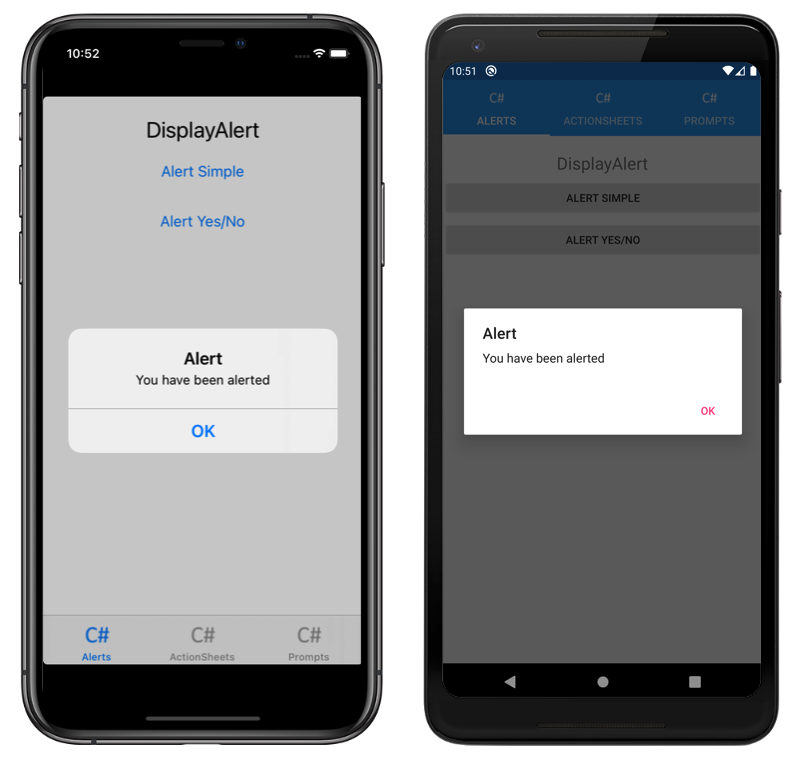 await DisplayAlert ("Alert", "You have been alerted", "OK");