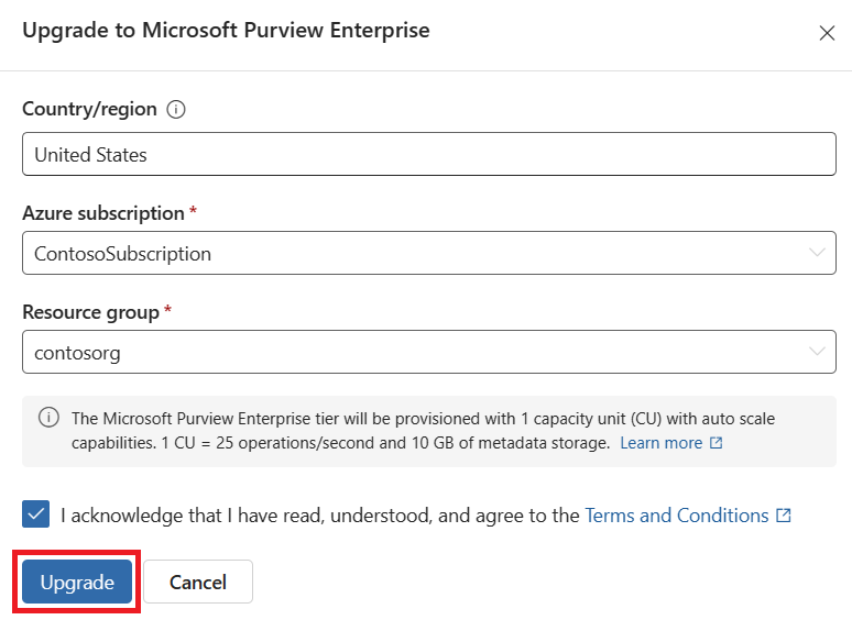 Upgrade from the free to enterprise version of Microsoft Purview data governance
