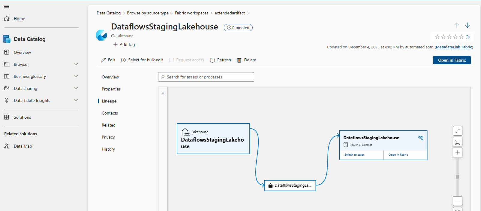 Scanning a Microsoft Fabric tenant will automatically bring in metadata and lineage from Fabric items including Power BI into Microsoft Purview Unified Catalog.