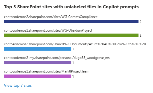 Use DSPM for AI to learn where oversharing is taking place and to find gaps in your policy coverage for sensitivity labels and DLP policies.