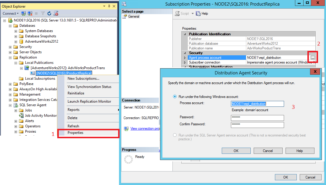 Connecting to Subscriber 'NODE2\SQL2016'