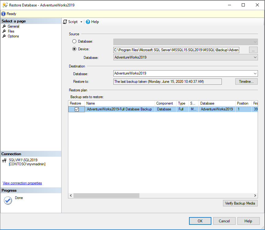 Restore to SQL Server