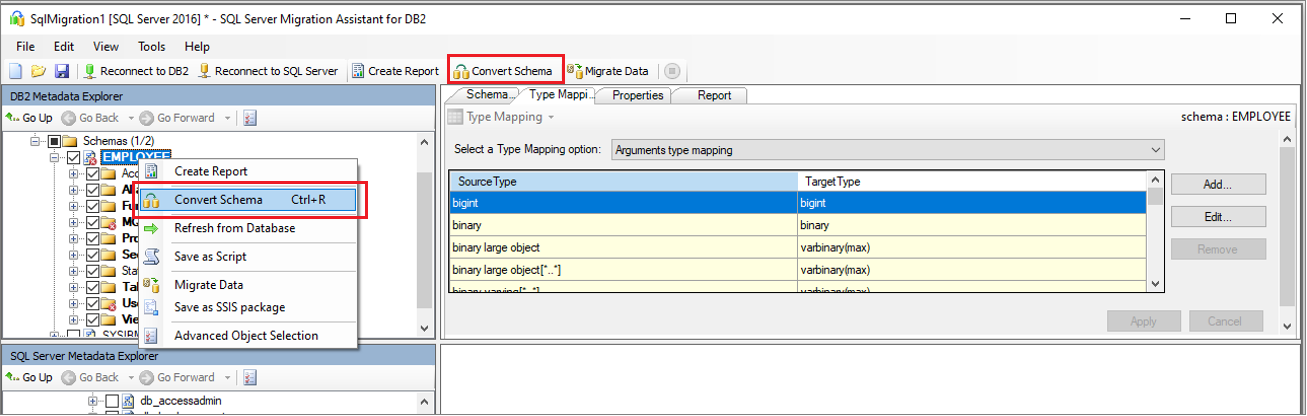 Right-click the schema you're working with, and then select Convert Schema. Alternatively, you can select the Convert Schema tab at the upper right.