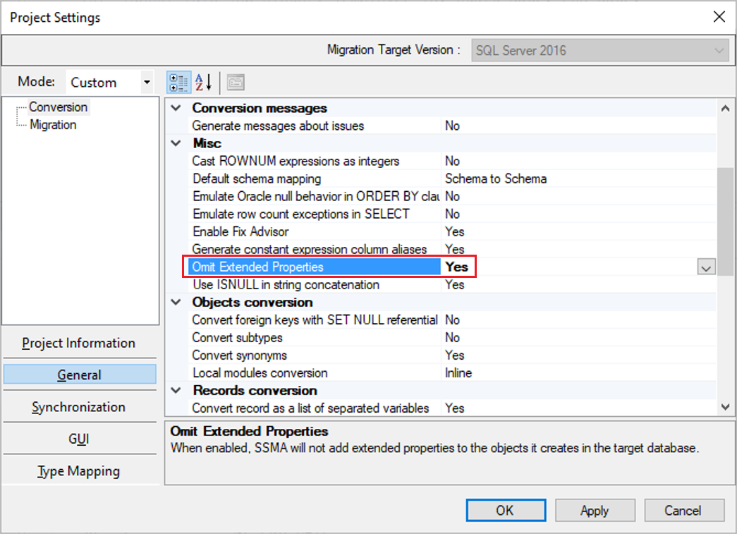 - Added a new conversion option that lets you specify whether SSMA displays a warning when a complex query contains a wildcard.