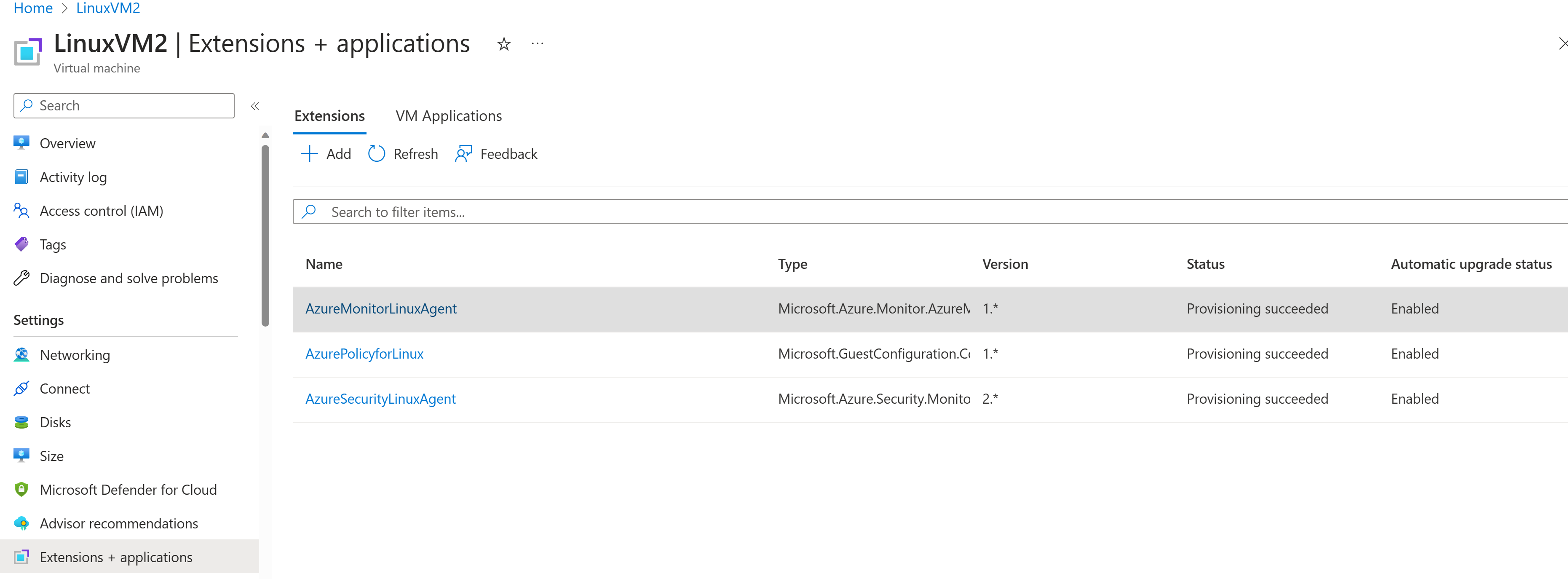 Select Refresh if the Linux machine isn't displayed.