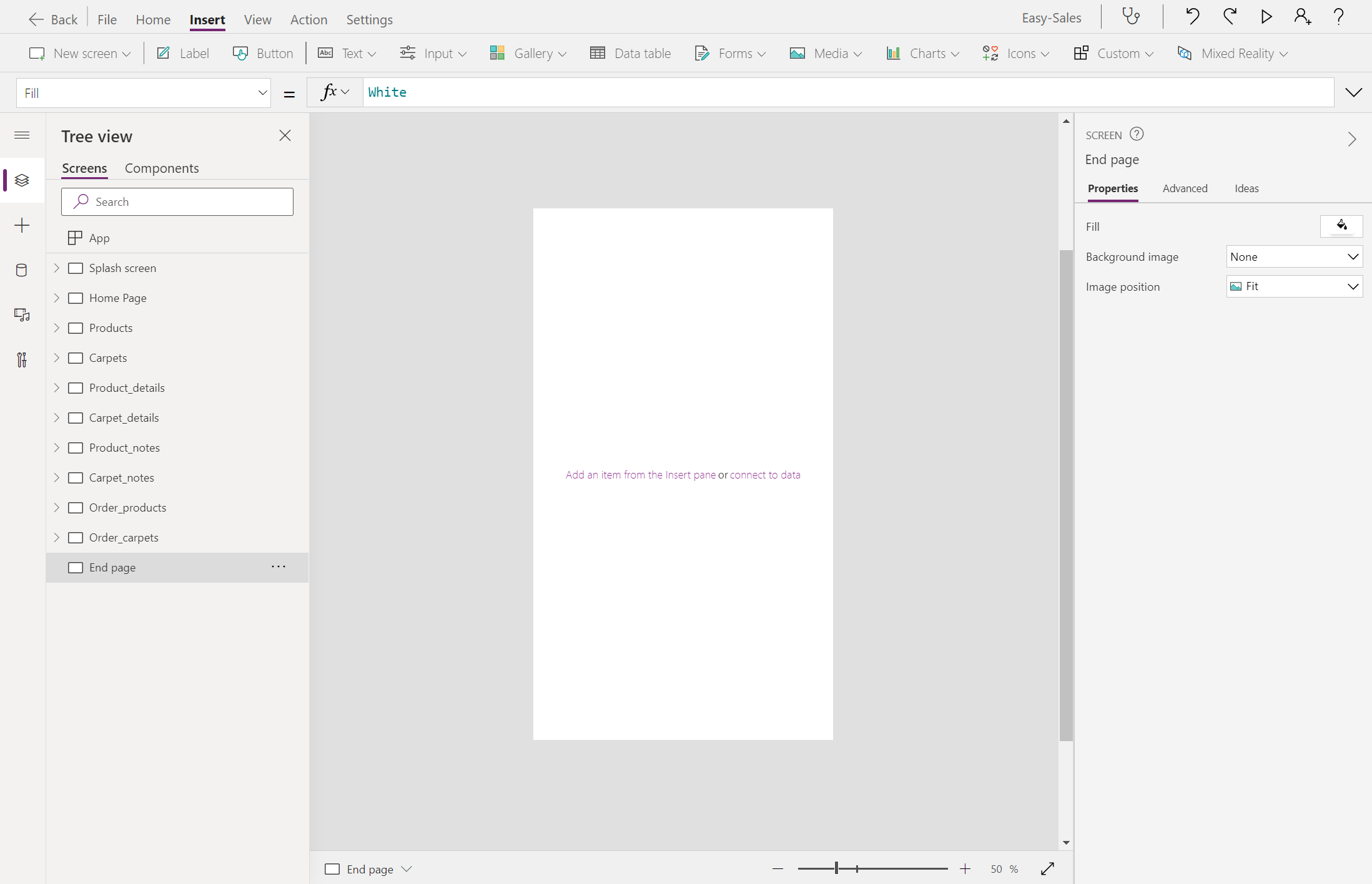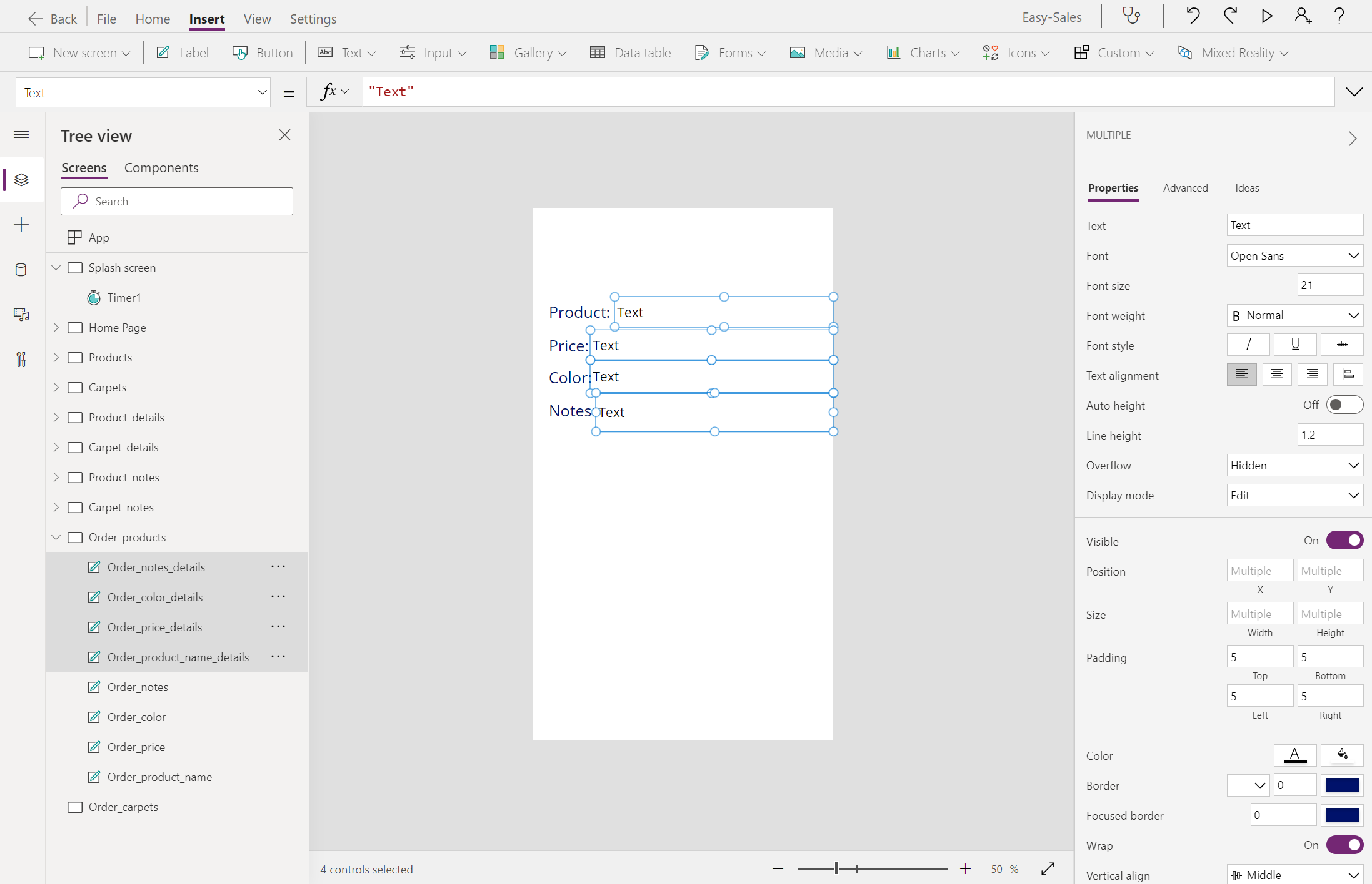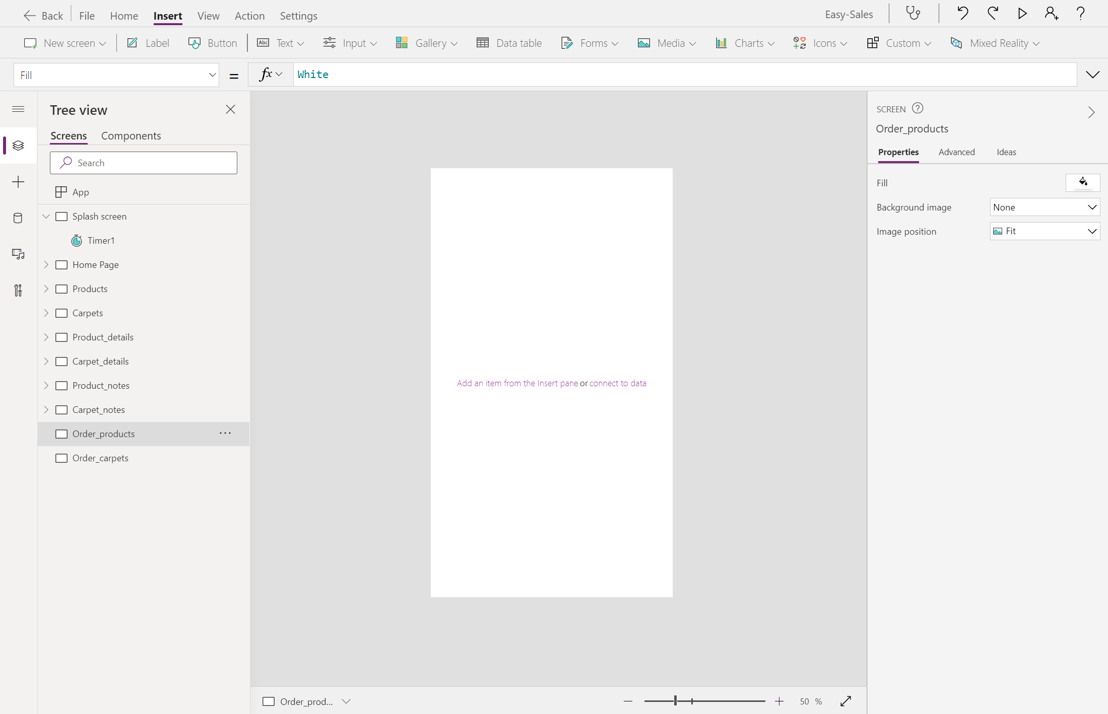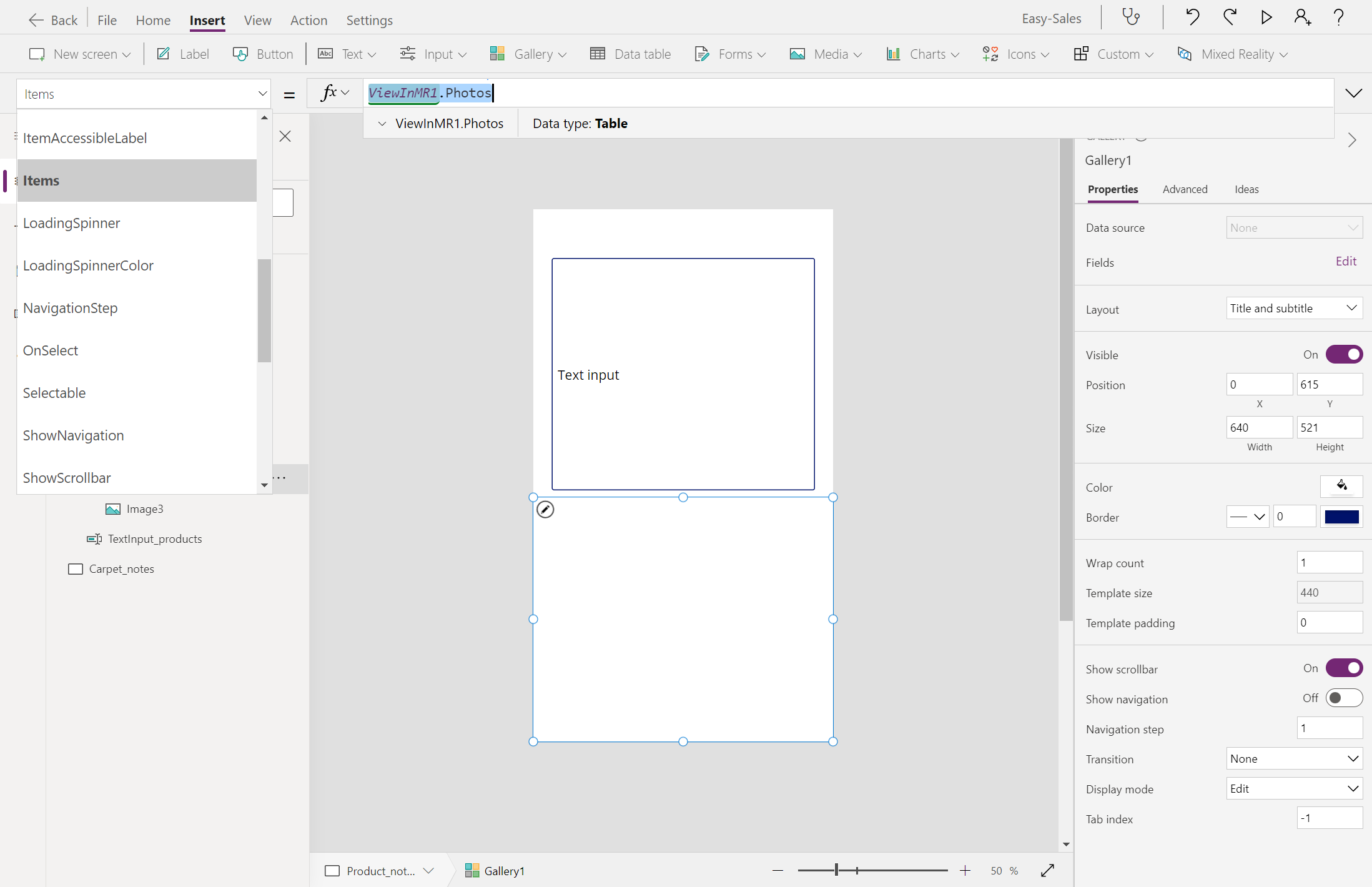 Navigate(Product_details,ScreenTransition.Cover)Switch to the Product_details screen and add a Note icon from the Icons dropdown on the Insert tab.