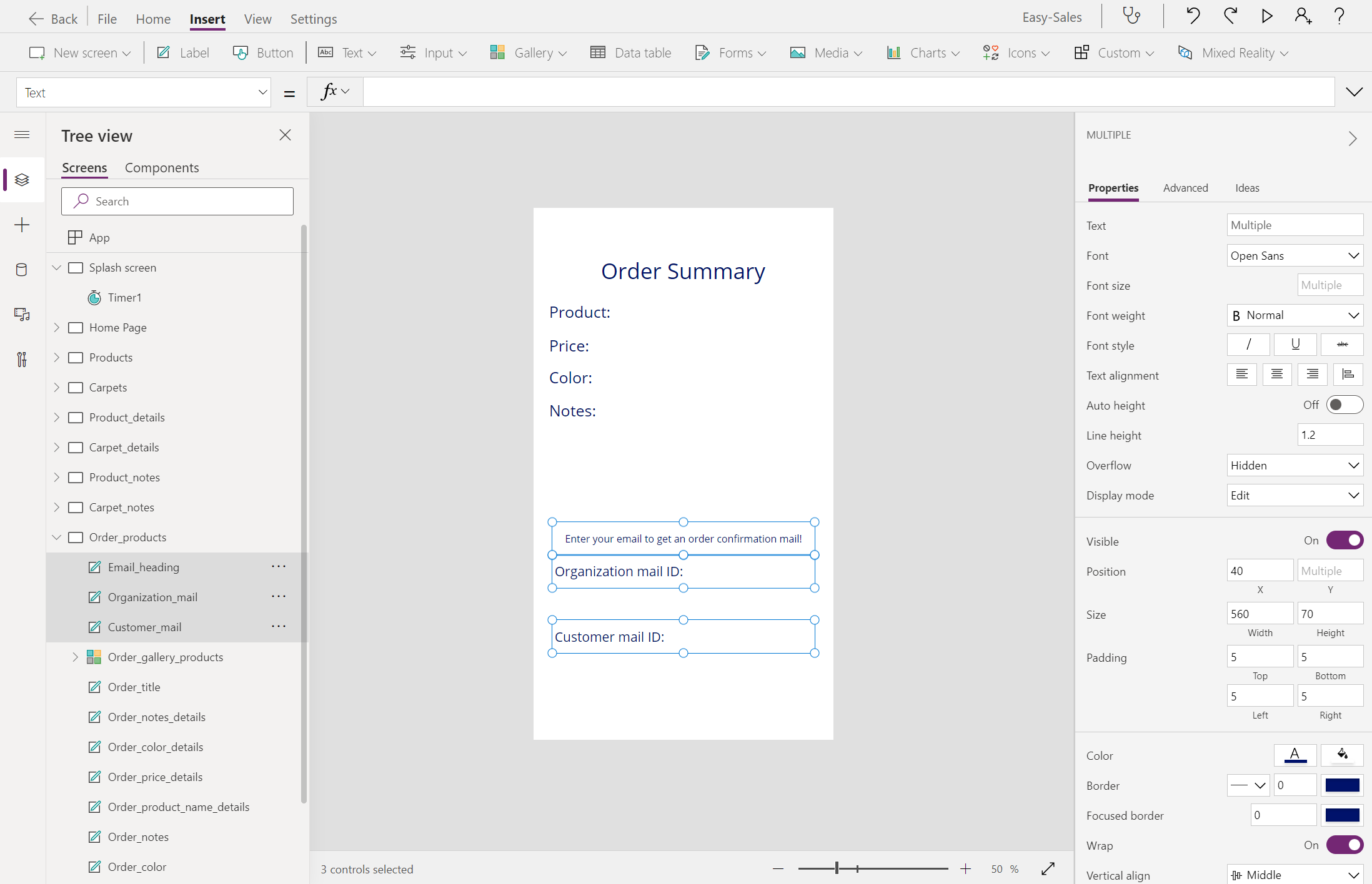 ViewInMR1.PhotosAdd three Labels and change the display text to Enter your email to get an order confirmation mail!, Organization mail ID:, and Customer mail ID:, respectively.