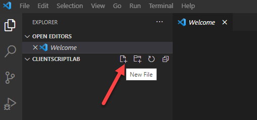 Hover over the CLIENTSCRIPTLAB folder and select New File.