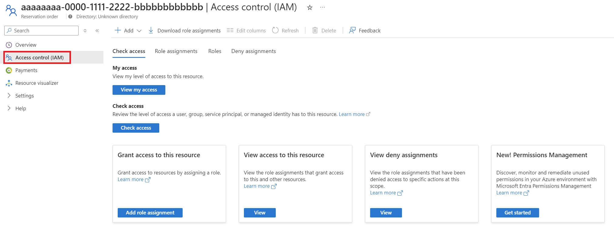 You can delegate access management for a reservation order in the Azure portal using the Reservation order with Access control (IAM).