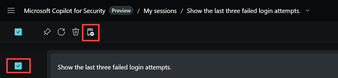 To create your own promptbook, you can start with an existing session that contains the prompts you want to work with. For this example, the session titled, "Show the last three failed login attempts," is used.