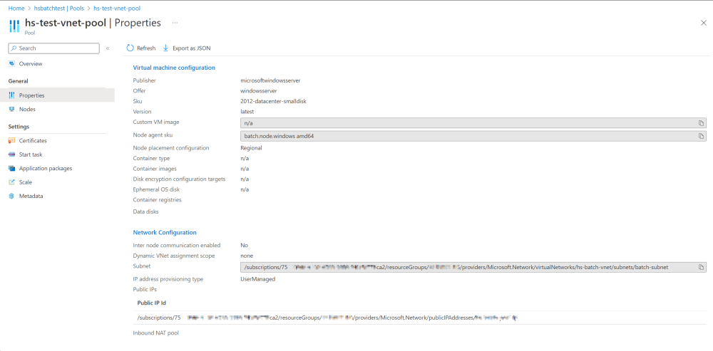 After that, check your Batch pool's properties. They will be like the ones in the following screenshot: