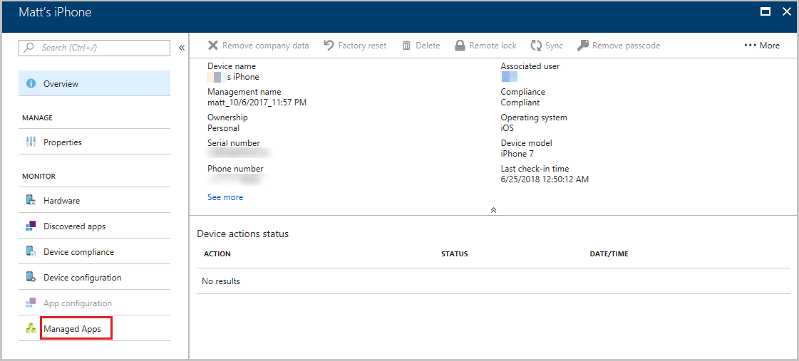 6. Select Managed Apps from selected device pane. A list of managed apps is displayed.