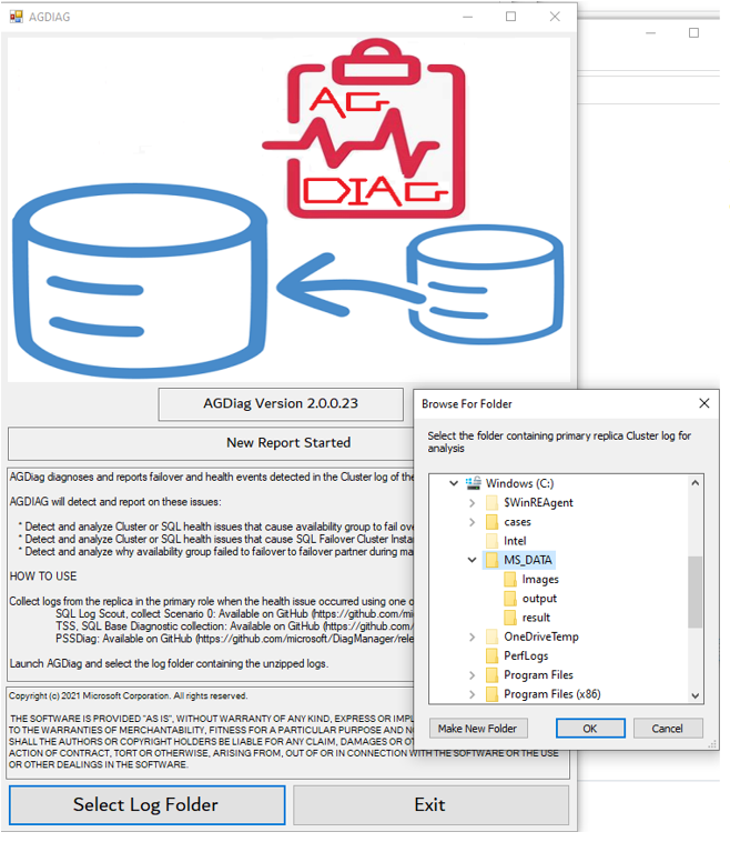After you download the tool, follow these steps to launch AGDiag and feed it the unzipped TSS logs: