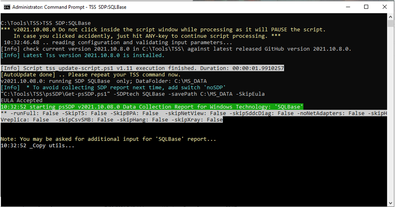 Open an elevated Command Prompt window, change the directory to the TSS folder where you saved and extracted the TSSv2.zip file, run