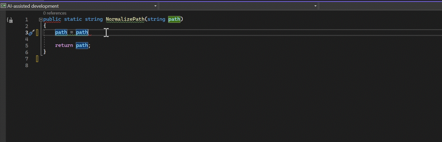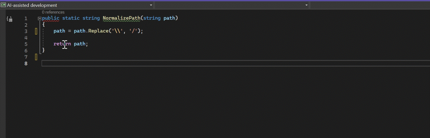 In this article, you’ll learn about the AI-assisted development capabilities you can use in Visual Studio to enhance your productivity and efficiency such as GitHub Copilot and IntelliCode.