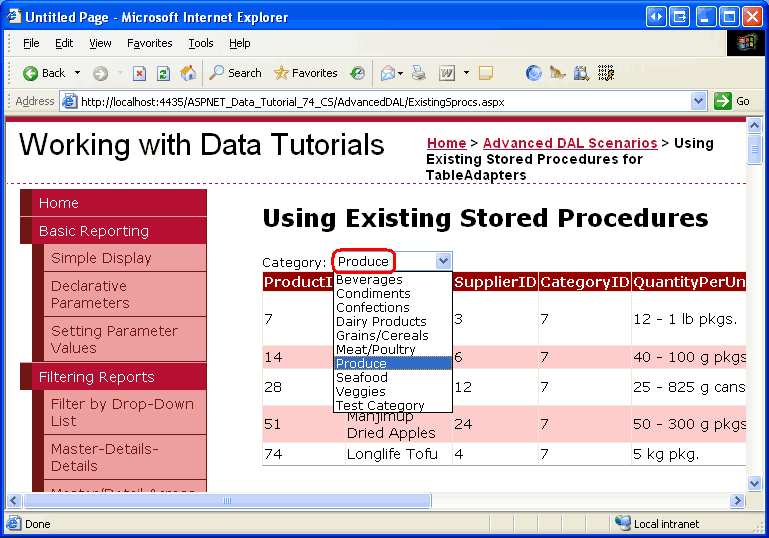 Figura 9: El @CategoryID parámetro refleja la categoría seleccionada en la página web (haga clic para ver la imagen de tamaño completo)