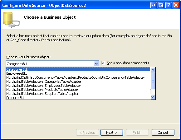 Figura 15: Configurar objectDataSource para usar la clase (CategoriesBLL la imagen de tamaño completo)