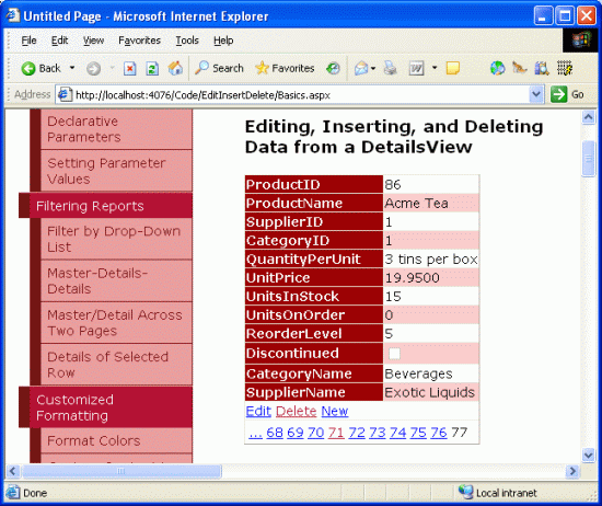 Default.aspxBasics.aspxDataModificationEvents.aspxErrorHandling.aspxUIValidation.aspxCustomizedUI.aspxOptimisticConcurrency.aspxConfirmationOnDelete.aspxUserLevelAccess.aspx