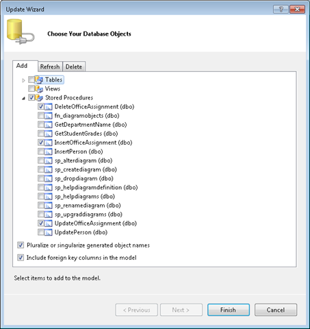 - Agregue procedimientos almacenados al modelo de datos para administrar entidades
