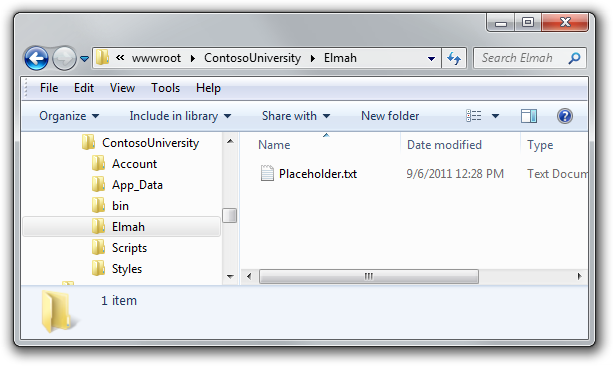 Compruebe que existe una carpeta Elmah con solo el archivo de marcador de posición.