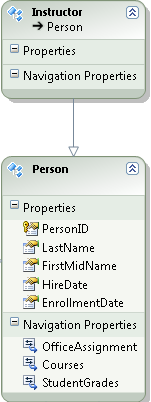 Instructortipos de entidad yStudentque deriven dePerson. - Mueva las propiedades que pertenecen a las entidades derivadas de la
