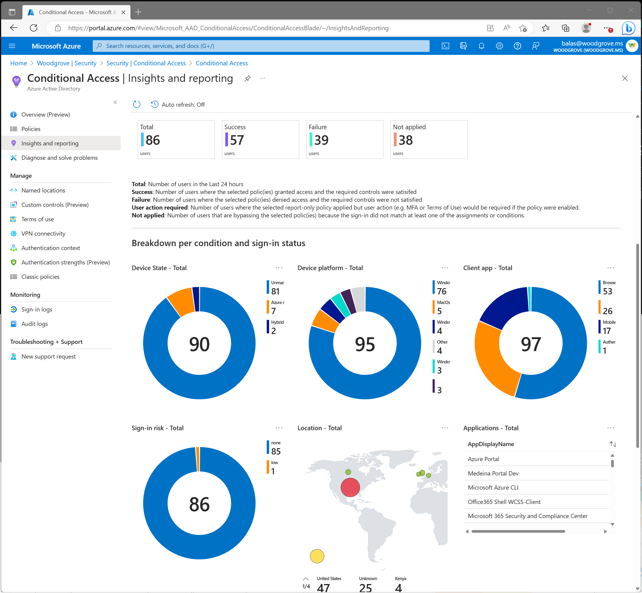 - Vaya a Entra ID>Acceso condicional>Información e informes.