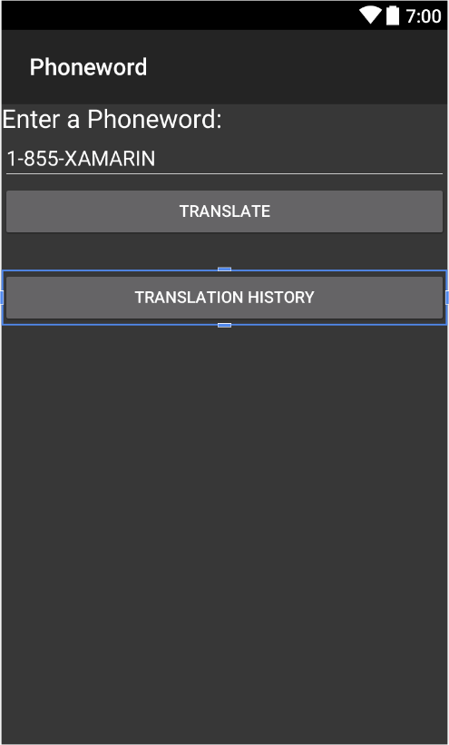 En este tutorial agregará una pantalla Translation History (Historial de traducciones) a la aplicación Phoneword.