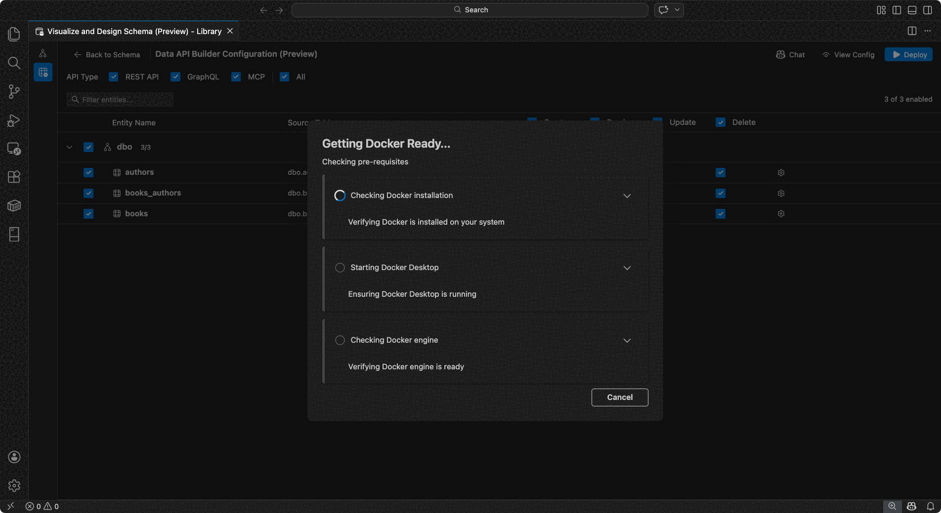 - Implemente data API Builder localmente como contenedor de Docker con comprobaciones automatizadas de requisitos previos.