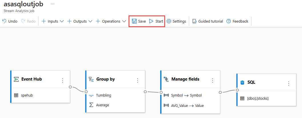 Selecteer Opslaan en selecteer vervolgens De Stream Analytics-taak starten.