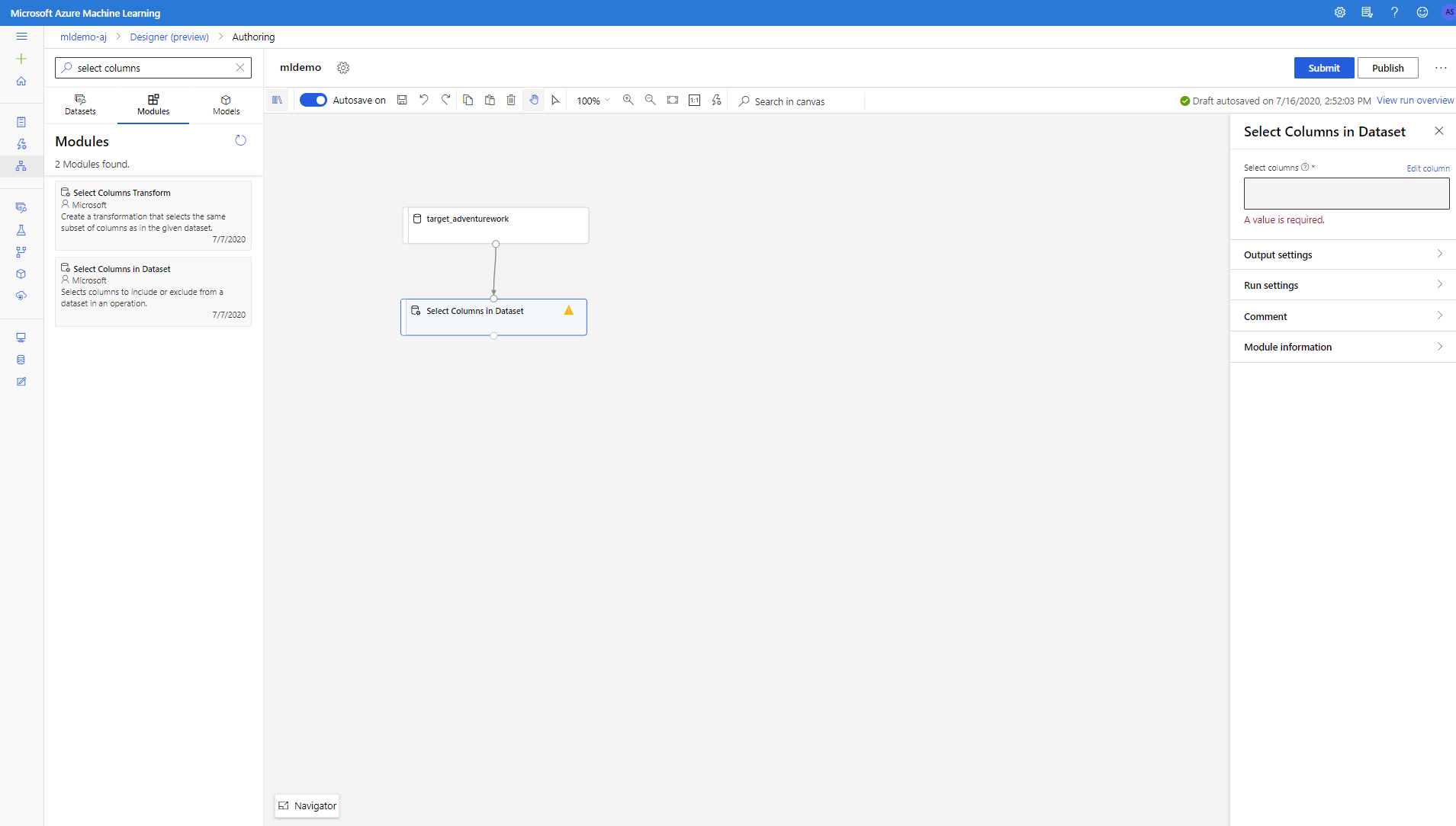 Als u de gegevens wilt opschonen, verwijdert u kolommen die niet relevant zijn voor het model. Voer de onderstaande stappen uit: