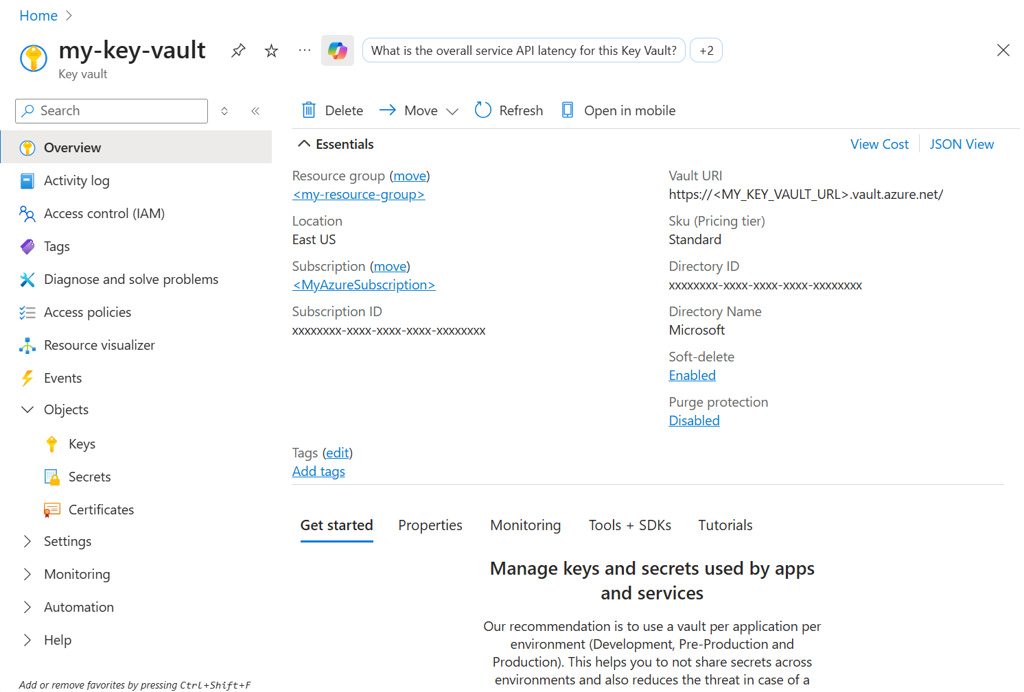 KEY_VAULT_URLmet deVault URIgegevens die u in de vorige stap hebt opgehaald. -